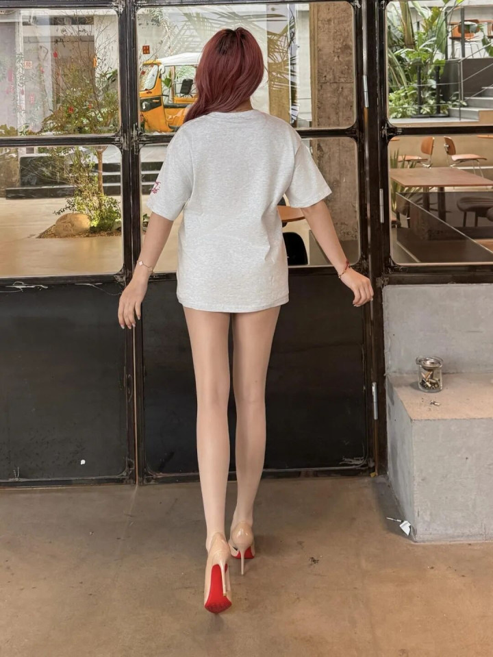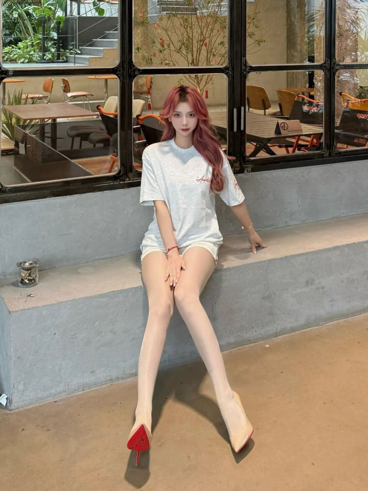 正规澳门游戏官网 颜值穿搭: 浅灰T+白短裤+红底高跟