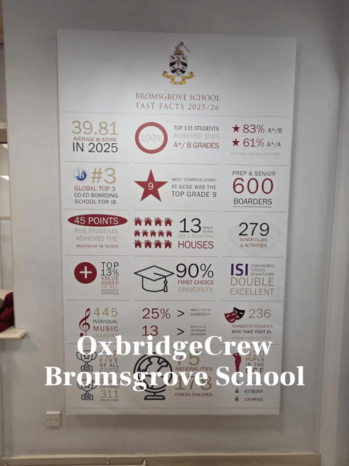 女校方面,Wycombe Abbey(威雅公学)是公认学术不凡的一所女校,在2025年,有39.9%的学生在A-Level考研中拿到了A*的好收货,A*-A的东说念主数高达75.7%,其生物和化学的收货十分亮眼,鉴识有73%和91%的学生拿到A*-A的好收货,是真确的六边形展示。上文提到的Swithun's School(圣斯威辛学校)在这两门学科的施展也可以,生物有70%的学生取得A*-A的收货,化学有83%的学生取得A*-A的收货 3.Bromsgrove有哪些优时弊? Bromsgrove School(布罗蒙想林苑学校)建校于1553年,是一所招收3-18岁男生与女生的私立中学,投寄生比例达46%,国际生比例天然较高,有36%,但其国外学生的组成相对平均,大多来自欧洲列国,学校扩充小班制,每个班齐不会跳跃20个学生。