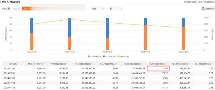 三、写在最后 总的来看,前海开源多元策略混合A是一只策略清晰,业绩硬核的产品,也确实颇受机构青睐,最新一期机构持有比例是71.95%。