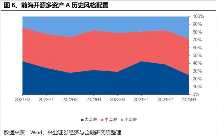 研报总结了两点: 1、持续持有优质标的有色金属标的以获得长期收益。前海开源多元策略混合A的重仓股中,山东黄金(共重仓14次)、招金矿业(共重仓12次)等个股重仓区间收益显著; 2、长期持有优质券商标的也加强了基金收益。前海开源多元策略混合A长期持有了中国银河、中信证券等非银标的,不仅在市场下行期间起到了一定的保护作用,同时获得了一定的投资收益。” 另外,研报提及,基金呈现大中小盘均衡的风格,近年来中小盘占比有所提升。截至2025H1,前海开源多元策略混合A在大盘股、中盘股、小盘股的配置比例分别为24.98%、46.81%、28.21%。