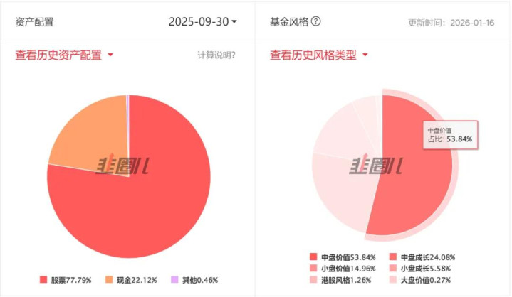 韭圈儿将其归类在中盘价值,最新数据显示,中盘价值权重是53.84%。
