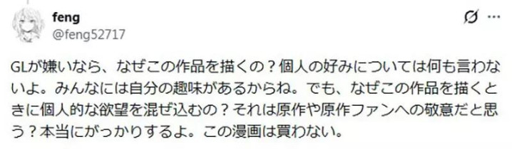 本年2月的发言 这句话一出来,驳倒区网友就开动示意盛怒: “既然不心爱百合,为什么要接这部作品?” “那你画的时分会不会全程粗率?” “改编最怕的即是不睬解受众,只会把原作魔力削没。” {jz:field.toptypename/}