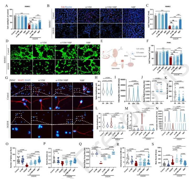 3.NBP通过靶向VIM阐扬细胞保护作用 在氧糖抢劫/复氧(OGD/R)携带的血管内皮细胞毁伤模子中,NBP推崇出权贵的促进细胞增殖、迁徙和成管材干。但是,通过缩短VIM抒发后沟通发现,NBP的保护作用被权贵收缩。雷同,在原代海马神经元中也出现了疏通的截止。HD-MEA记载进一步暴露,NBP能收复受损神经齐集的电行为特色,但此效应在VIM敲低后隐没。以上截止评释,VIM是NBP阐扬其细胞保护功能的必要条目。