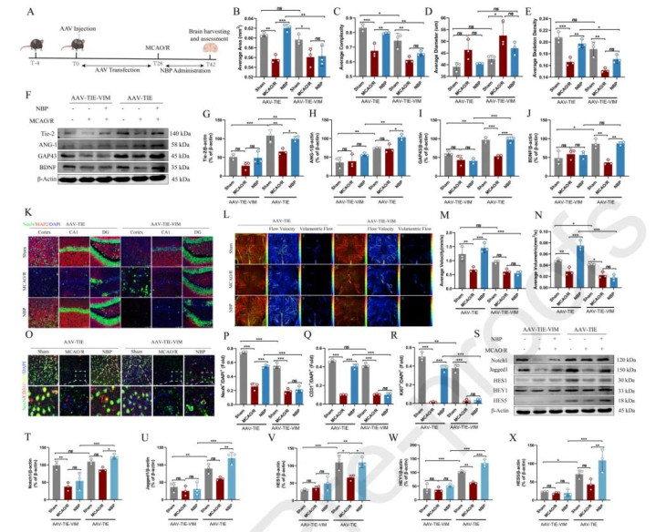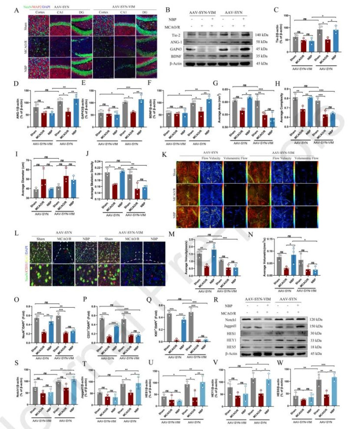 4.通过VIM调度,杀青血管—神经双重诞生 通过构建血管内皮特异性敲低VIM的转基因小鼠模子(AAV-TIE-VIM)发现,在血管内皮中,NBP通过VIM激活Notch信号,促进血管重生关连因子(ANG-1/Tie2)抒发。在神经元中,NBP增强神经突触可塑性,进步GAP43、BDNF等诞生卵白水平。在此模子中,NBP改善脑血流、促进血管重生和神经诞生的作用均被权贵羁系,标明NBP主要通过靶向血管内皮细胞中的VIM,来协同运转卒中后的血管重构与神经功能收复。