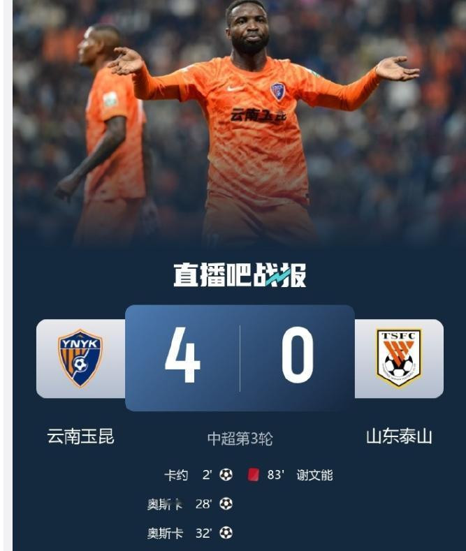 当主裁判三声长哨响起,山东泰山球员呆立在玉溪高原体育中心的草坪上,比分定格在0-4!这个扎眼的比分像一记重锤,砸碎球队前两轮连胜的孤高,更砸碎巨额山东球迷的心。从“牢不可破”到“崩如山倒”,这支中超传统朱门究竟如何了?
