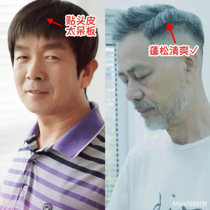 发型③:贴头皮西瓜头,固执还显老态✘ 有不少的中年男东谈主懒得收拾我方的头发,既不烫染也不修剪,就留着这种绵薄的西瓜头,还以为能显得头发娇娆少量,看着更减龄,实则这种发型没什么端倪感,不但莫得达到减龄的恶果,还加重了固执的嗅觉。更迫切的是,这种发型的学不悦很重,中年男东谈主身上早就没了那股子年青活力,实在是独霸不了。 再看其他大叔,就算是满头白首,但他们懂得选用更有蓬松感、利落感的短发,不刻意的扮嫩倒是更显年青呢。