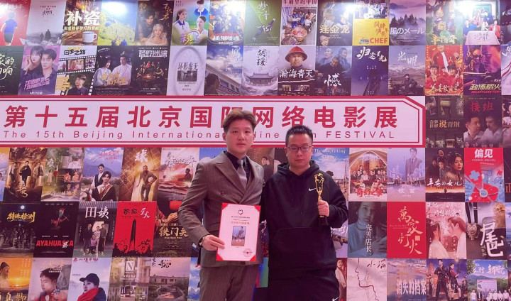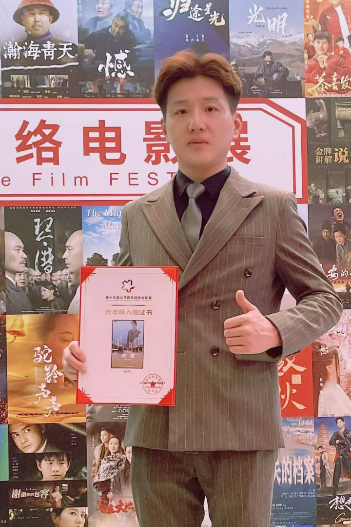 与第十五届“光年杯”北京国外聚集电影展赢得聚集电影最好编剧的影片《稀薄检测》的编剧田涯坤合影。