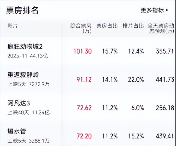 还有一部,即是旧年11月上映,今天仍居单日票房第1的好莱坞电影《纵容动物城2》,票房已达44亿。