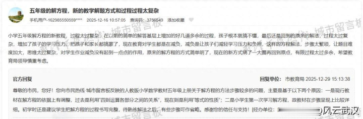 近日,有小学家长在城市留言板投诉:五年纪的解方程,新的教学解题神色和经由经由太复杂