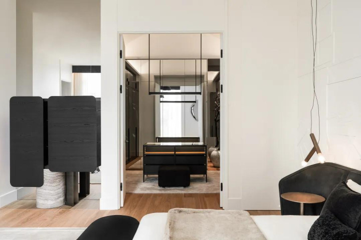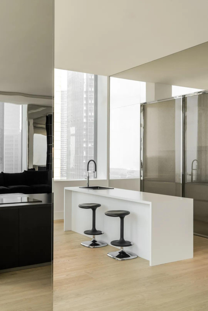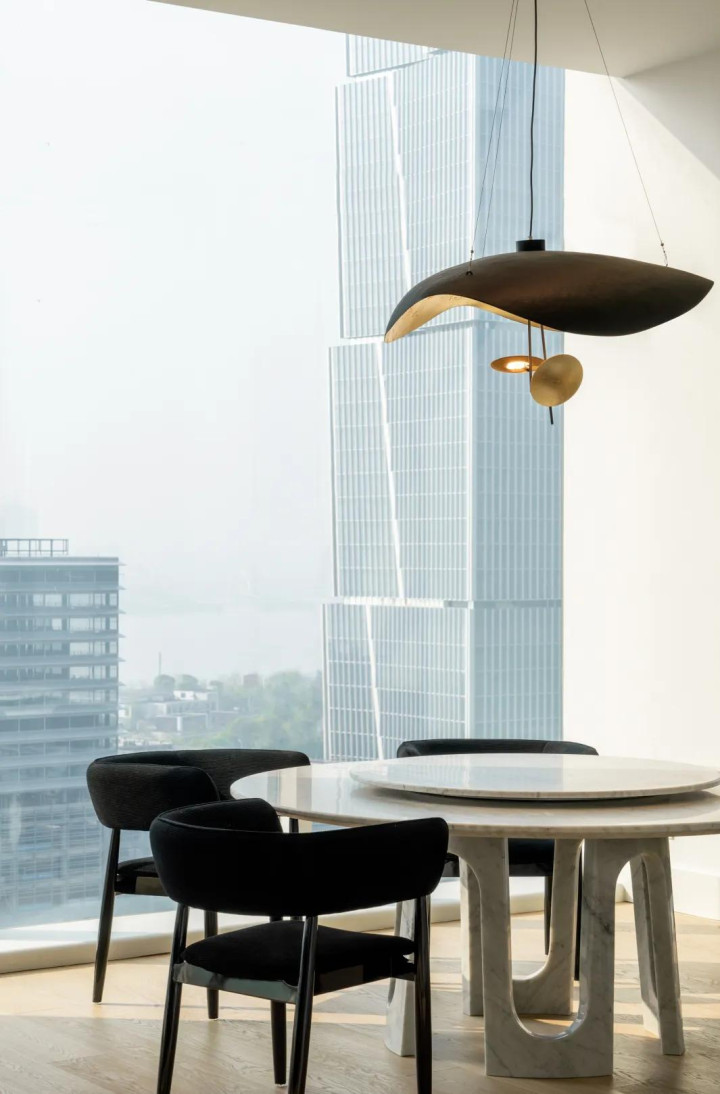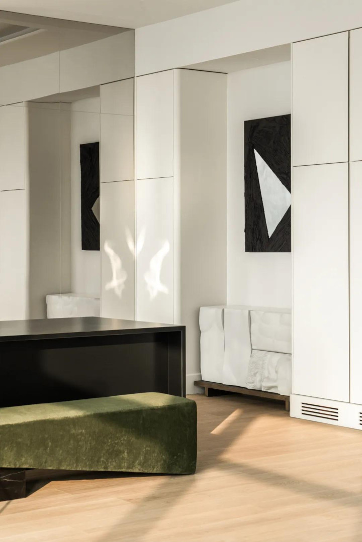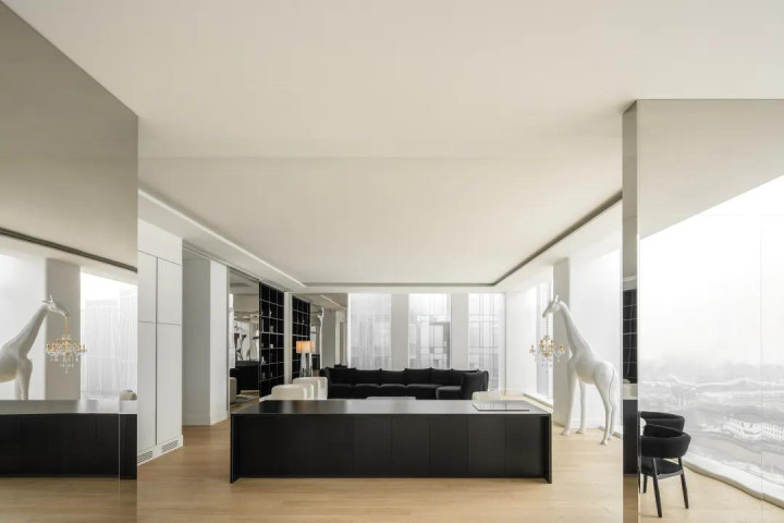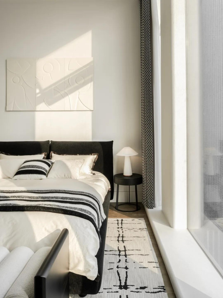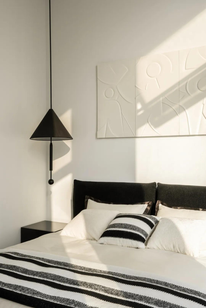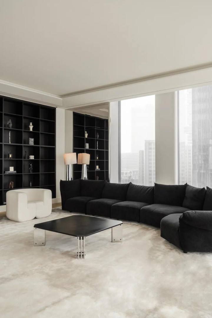 短长两色有着与生俱来的力量,极致中透着包容。醒见识玄色沙发与置物架框定下静谧的区域,督察室内的冷静。而透亮的落地窗又结巴了透澈的禁闭,架起城市与家的桥梁,造成表里的交互。