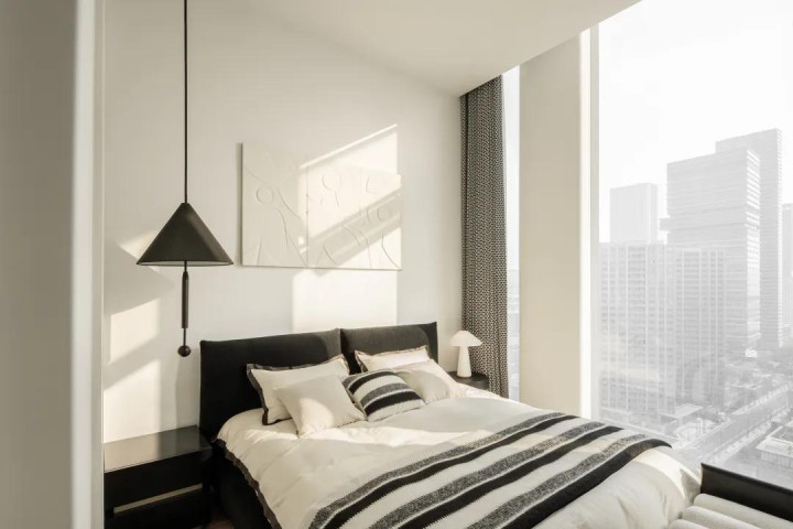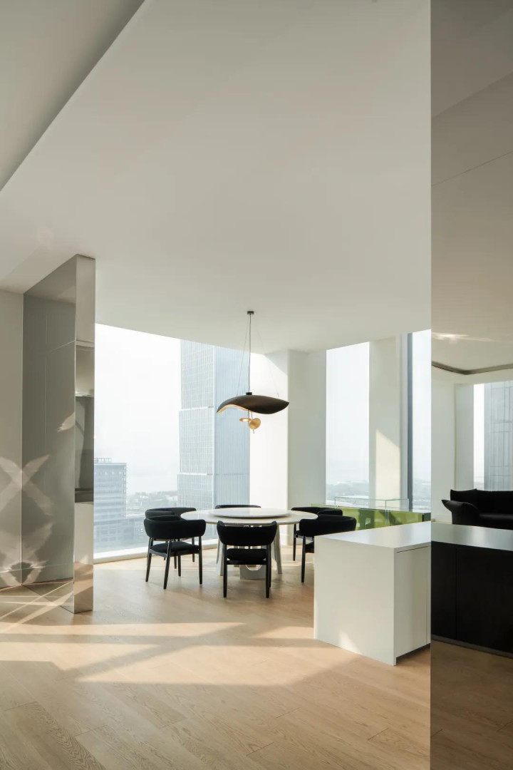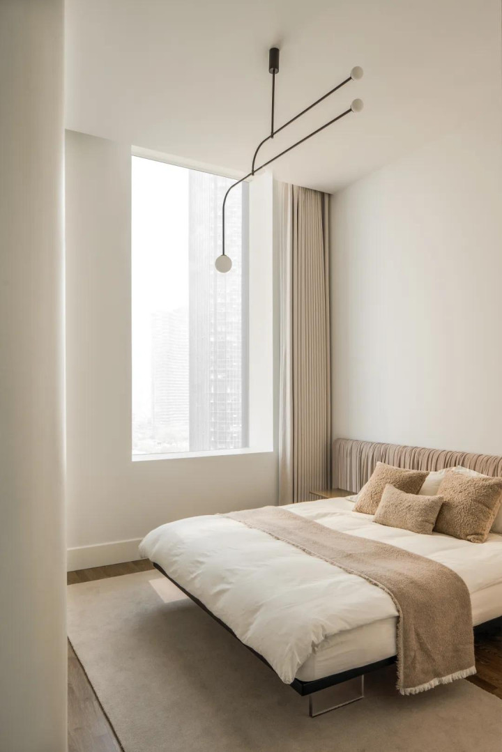 几何与光影 描画逼真之处 干净亮堂的一体落地窗适值契合空间的笼统,增强室内的明媚感。镜面盘算推算将日光充分传送到室内的每个边缘,折射出黑甜乡的光芒。悄然无声,时光慢了下来,描画下点点回忆。