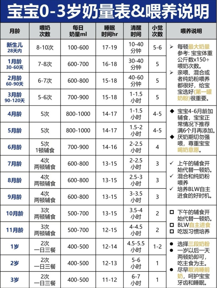 除了奶量,喂养的细节也十分要津。喝完奶难忘帮宝宝拍嗝,戒备吐奶呛奶。1岁以内的宝宝,辅食里不要加盐和糖,保护他们娇嫩的肾脏。每个宝宝齐是唯一无二的,食量有大有小,这份参考表仅仅一个节略的标的,惟有宝宝精神好、睡得香、体重增长平方,就毋庸太缅思。科学喂养,耐烦不雅察,你会发现带娃其实也没那么难! |