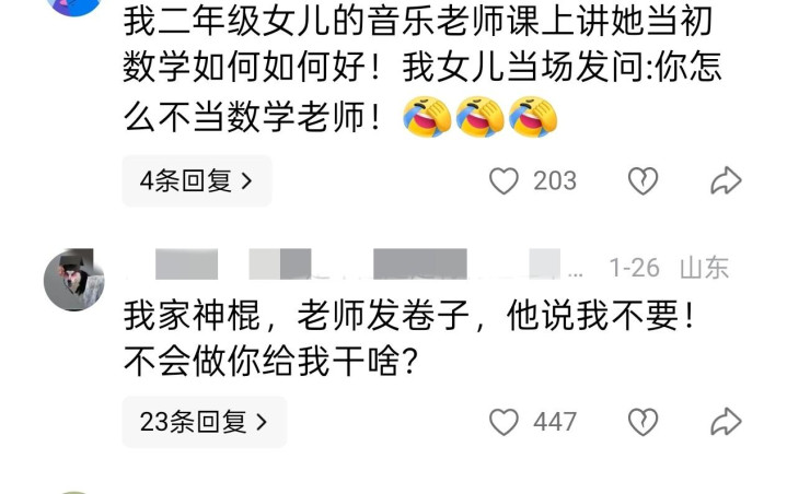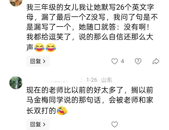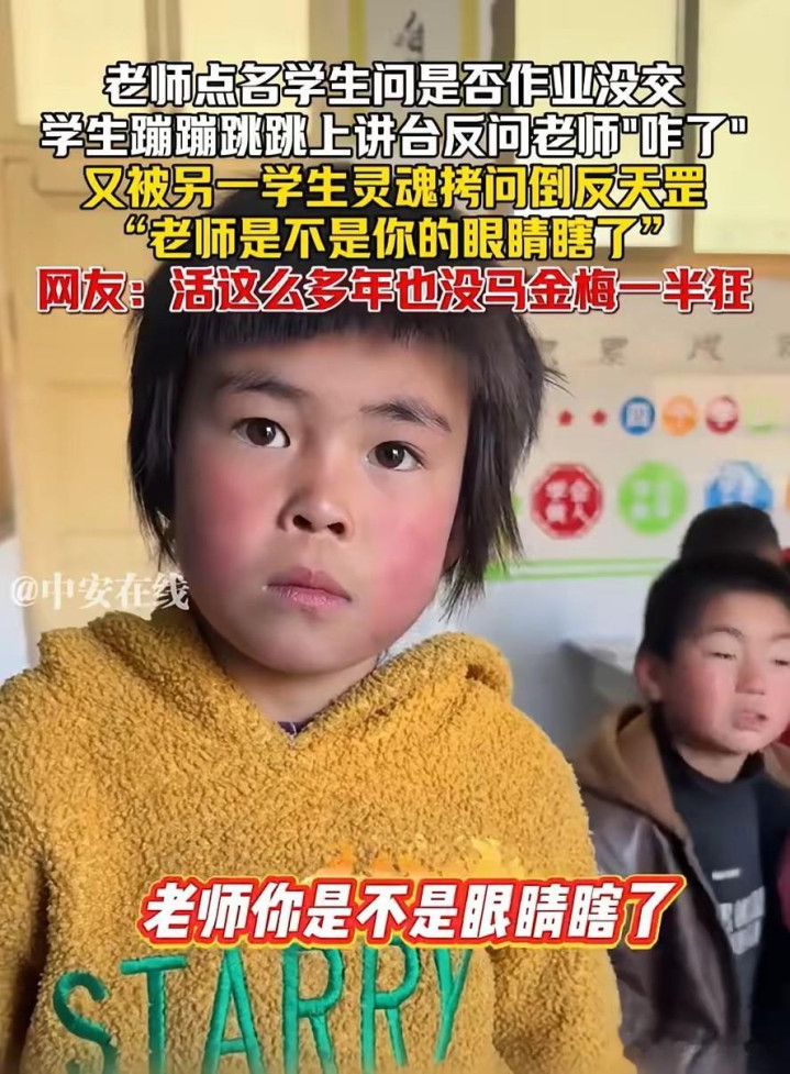 更离谱的还在后头,就在真诚被怼得愣在原地时,台下倏得冒出另一个学生的声息,径直补了一句“真诚是不是你的眼睛瞎了?” 这话一出,课堂上还有学生随着暗笑,时事一下子变得相称尴尬。这段几十秒的视频,径直把网友炸懵了,纷纷吐槽:“活这样大,还没见过这样狂的学生,比马金梅还敢说!” 视频亡,批驳区里不少家长都忍不住晒起了自家孩子的“反水名时事”,险些是大型共识现场。