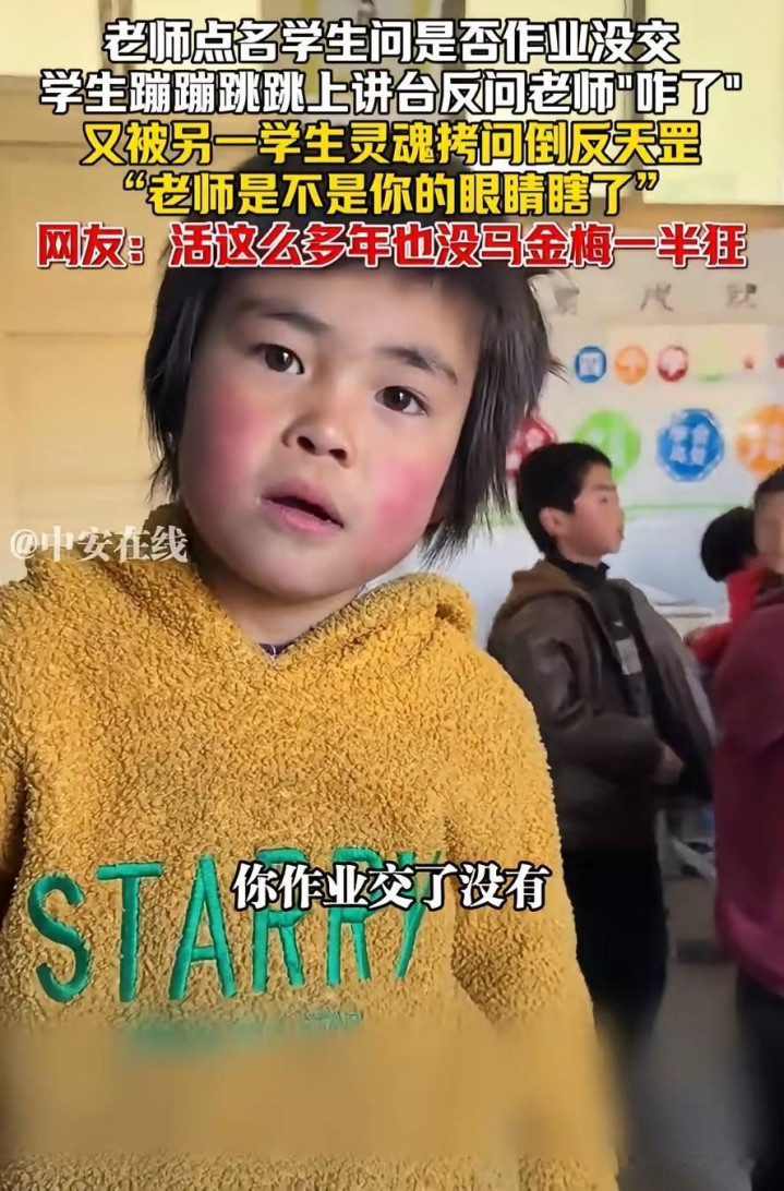 文 | 天方夜谈 “文内所有信息都出自泰斗媒体” 最近一段课堂视频在网上传得沸沸扬扬,看完确切让东说念主惊掉下巴!真诚上课点名,问一个学生功课是不是没交,没思到这孩子径直双手插兜,连蹦带跳地走到讲台前,一脸无所谓地反问真诚“咋了?”
