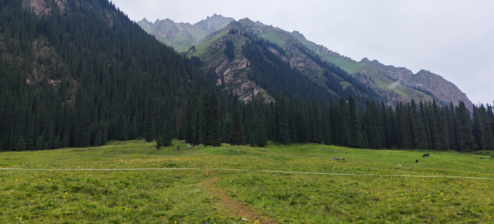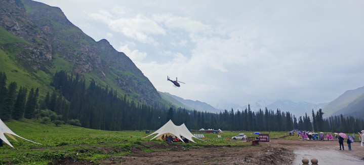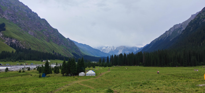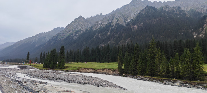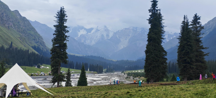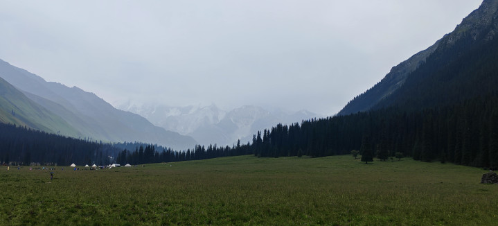 夏塔位于新疆伊犁昭苏县,这里有20℃的冰川冷风和无东说念主惊扰的雪山草原,是酷暑夏日的避暑天国。磅礴的木扎尔特冰川、沧桑的夏塔古说念、雪山、草原、河流、丛林在这里收罗,被《中国国度地舆》评为“伊利最具野性之好意思的景区”。来的这世界雨,影响了它的好意思,不外亦然另一番体验。