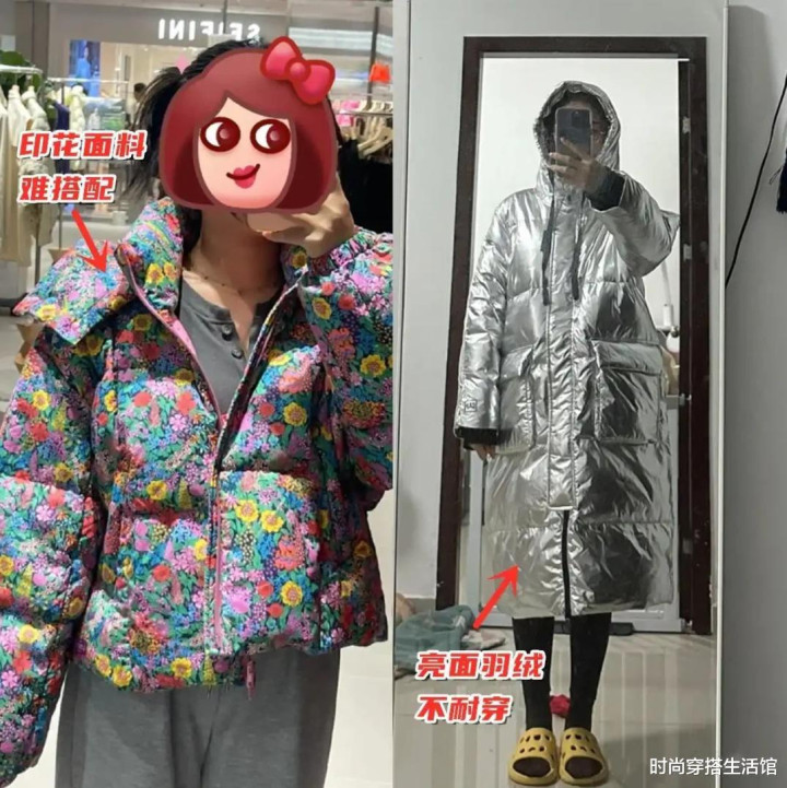 其实挑选羽绒服的时候就会发现,刻下有许多羽绒服岂论是筹办也曾颜料方面皆变得比拟花哨了,比如像是印花面料的羽绒服,很有可能本年流行来岁就不流行了,在搭配上健硕蓬松的材质,穿在体格会给东说念主已汇总花里胡梢的嗅觉,其次即是选拔印花和亮面的材质超等挑东说念主,愈加容易流露肤色和年齿,反之咱们不错选拔基础色或者低填塞度色调,不仅经典百搭同期还不挑东说念主。 雷区⑵填充物分歧格的羽绒服