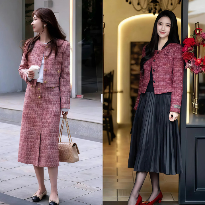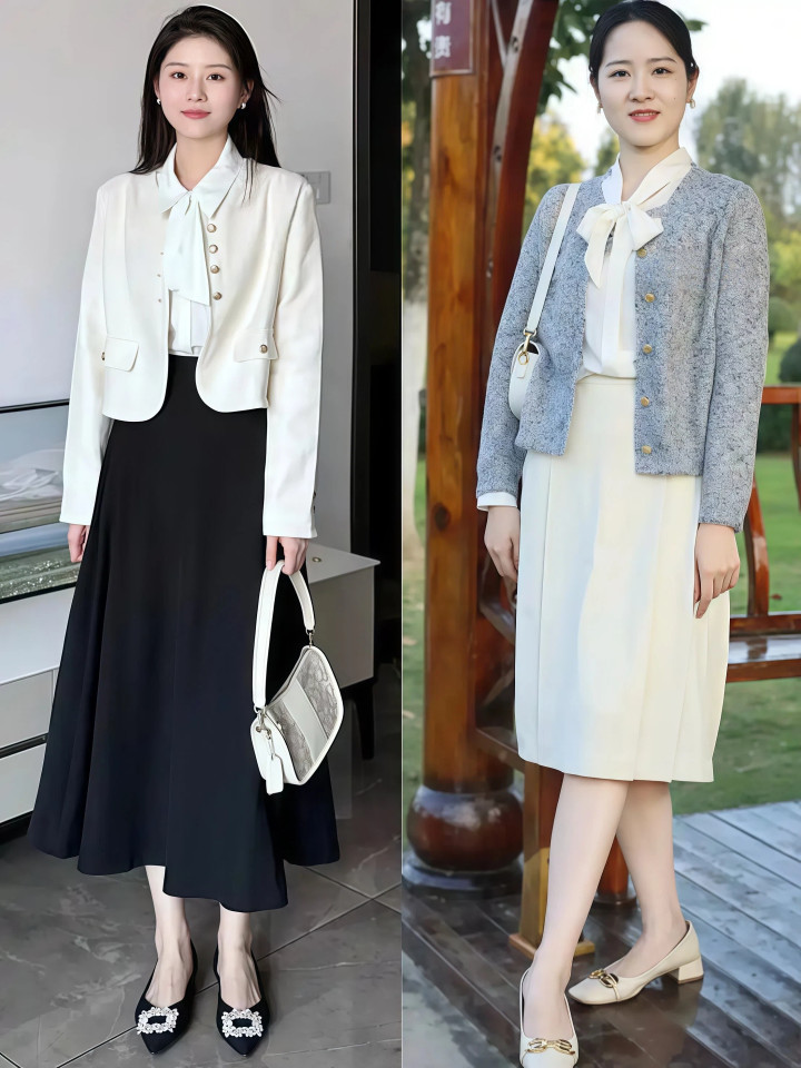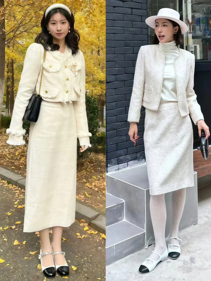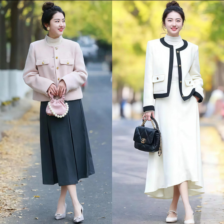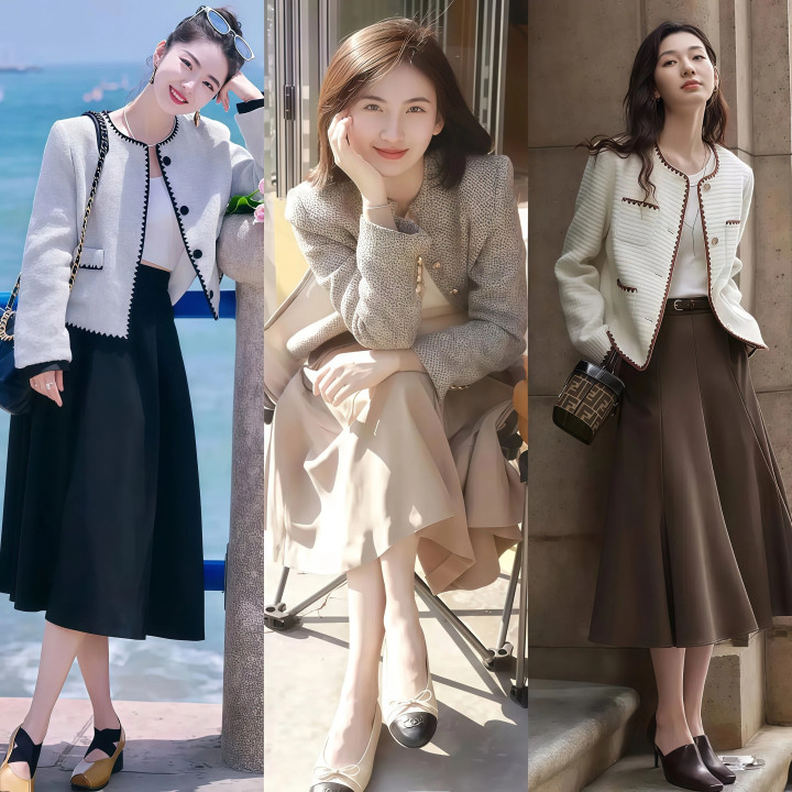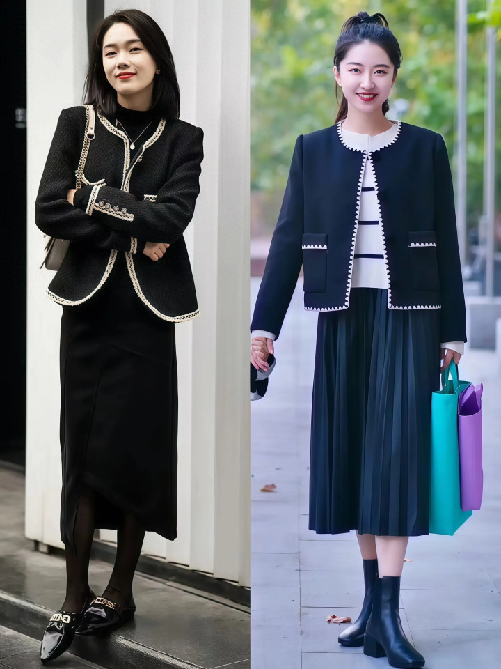 第一部分:为什么名媛风“小香风+半裙”,谁都夸洋气? No1:“小香名媛风”,平庸东说念主也能独霸 好多东说念主一听到“小香风”就合计是有钱东说念主的专属,但其终了在的小香风外衣,早也曾是“旧时王谢堂前燕,飞入寻常匹夫家”了!岂论是价钱照旧名目,对平庸东说念主的条件都没那么高了! 短款+收腰的版型,能当然收紧腰腹、拉长下半身比例,再加上粗花呢面料,致密显高显腿长一驾驭。不需要你有多白多瘦,只消名目选对了,平庸身段照样能穿出低调有气质的嗅觉,确凿决定你能不可独霸小香风的,是名目和豪情的禁受。