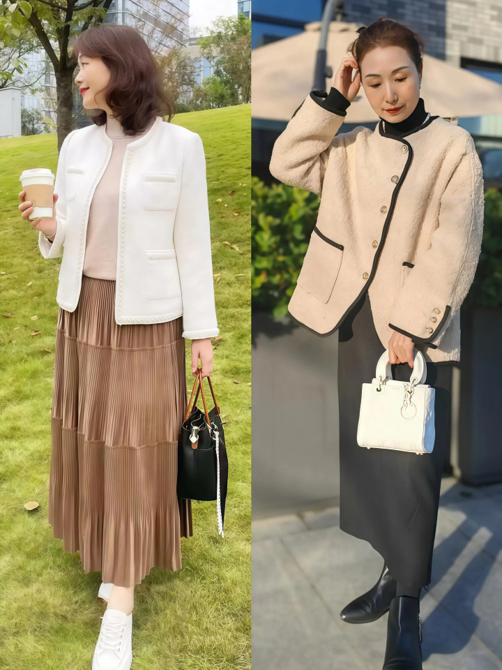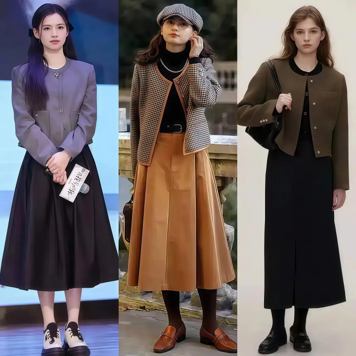 three 长裙配小香风外衣,遮肉还有女东说念主味 如果你对腿型不太自信,梗概过年那几天实在太冷不想露腿,就选过膝长半裙搭配小香风外衣,无用系念小腿粗、膝盖黑、腿型弯这些问题。 长裙往来时有一种优雅的摇曳感,配上致密的小香风外衣,气质一下子就珍藏起来了,终点稳当去见长者,长度最好规模在脚踝近邻,不要拖地,走起路来才利落。