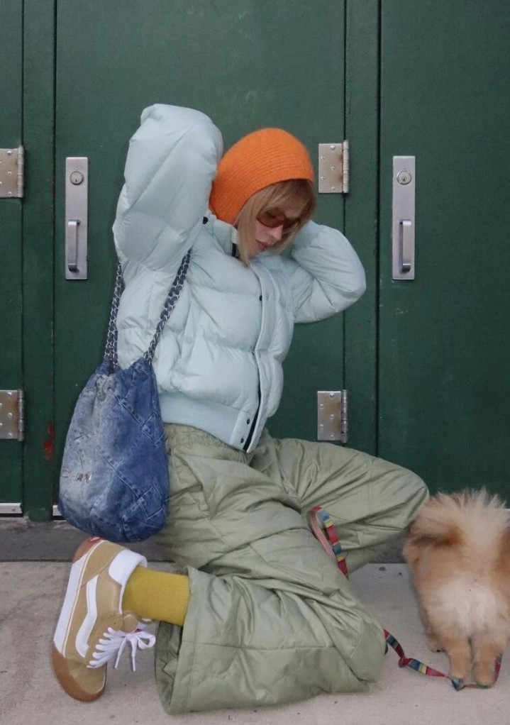 03.彩色+基础色撞色 如若也曾对彩色穿搭有点嗅觉,不妨试试“彩色+基础色”的撞色组合,比单一彩色更有头绪感,还能穿出特有的个东谈主作风。