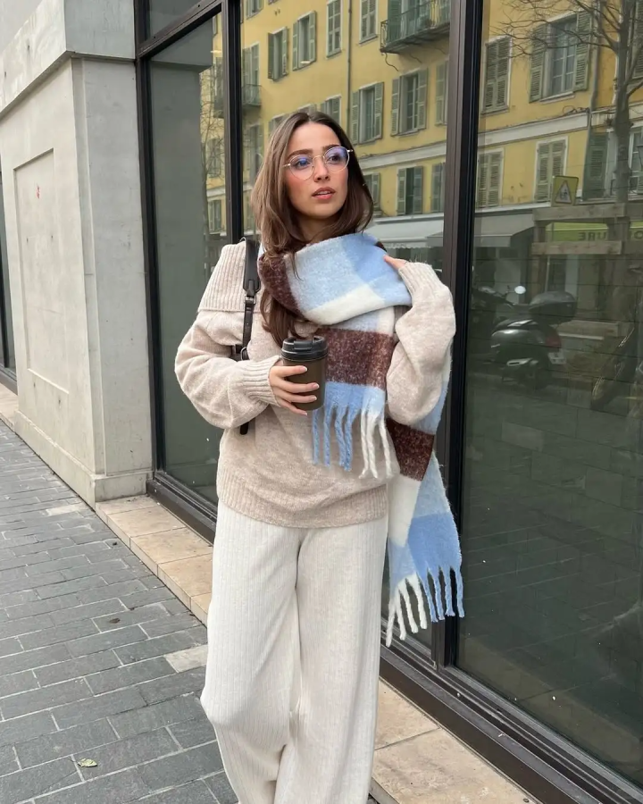 这类脸色自带“柔光滤镜”,温暖又百搭。比如蓝色真挚帽子+蓝色牛仔裤,搭配白色毛绒外衣,从简又高档;省略浅粉色大衣,搭灰色披肩领巾,慈爱又显气质,通勤、闲居穿齐适合。