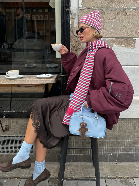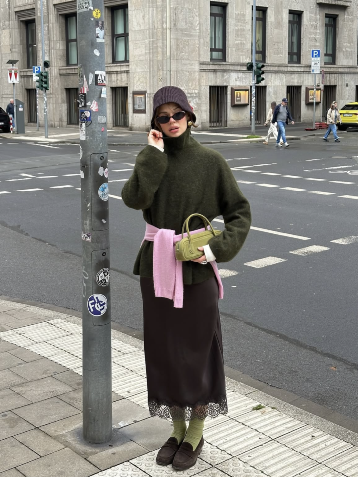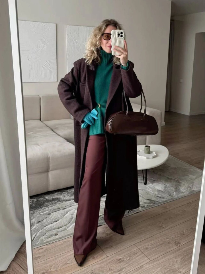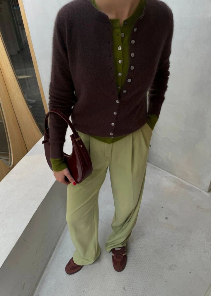 经典的组合有:绿色+粉色+棕色,红色+蓝色+棕色,千里稳中带着贵气,温暖又有活力,闲居出街回头率超高。