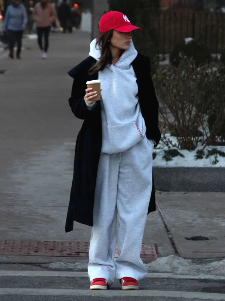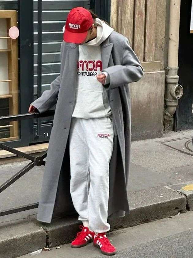 比如穿长短灰长款大衣时,内搭亦然基础色,不错配一顶彩色帽子、一对彩色鞋子,视觉焦点坐窝就有了,还不会显得芜杂。