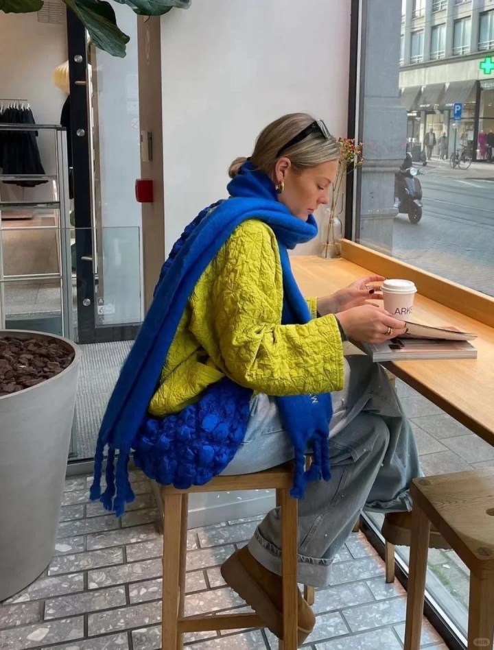 彩色自带“提亮buff”。冬天寒凉,渴慕慈爱阳光,一件亮色单品比如鹅黄色大衣、雾霾蓝外衣,能已而给冬日增添活力,还能衬得肤色更通透。黄皮姐妹选低有余度的彩色,比如豆沙粉、橄榄绿,反而能中庸肤色里的黄气,比穿白色更显白。