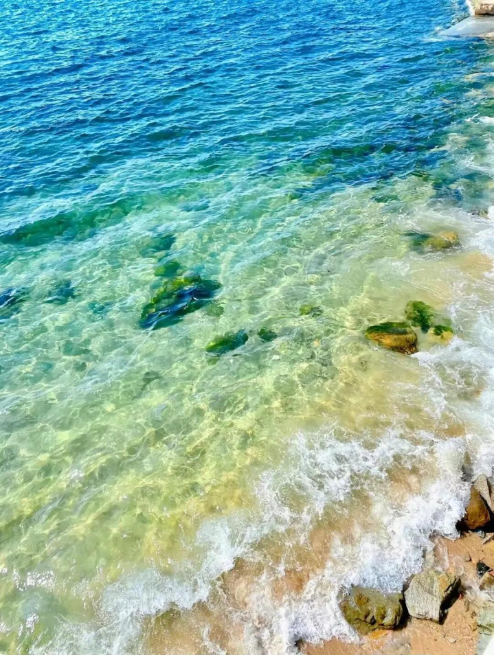 浅滩上,白沙如雪,与碧水相拥,波澜轻推,礁石与贝壳在水中乍明乍灭,像海底埋藏的旧信。坐在这里,隐衷被潮流带走;跳进去,灵魂便千里入一派澄明。