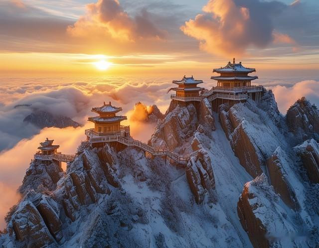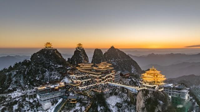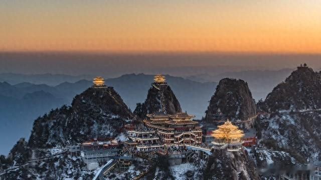 雪中瑶池:冬季的老君山被厚雪笼罩,松枝挂满彻亮的雾凇,说念不雅的琉璃瓦与白雪相映,云海在群峰间翻滚,宛如“天上宫阙”。 金顶霞光:日出时辰,金色的阳光洒在覆雪的金顶说念不雅群上,将24K金瓦染成粉金色,与周围的雪景、云海共同组成飘荡的视觉盛宴。 日落技巧(17:50-18:30),山顶灯光亮起,与雪景交相照映,是拍摄“雪景+灯光”大片的黄金技巧。 {jz:field.toptypename/}