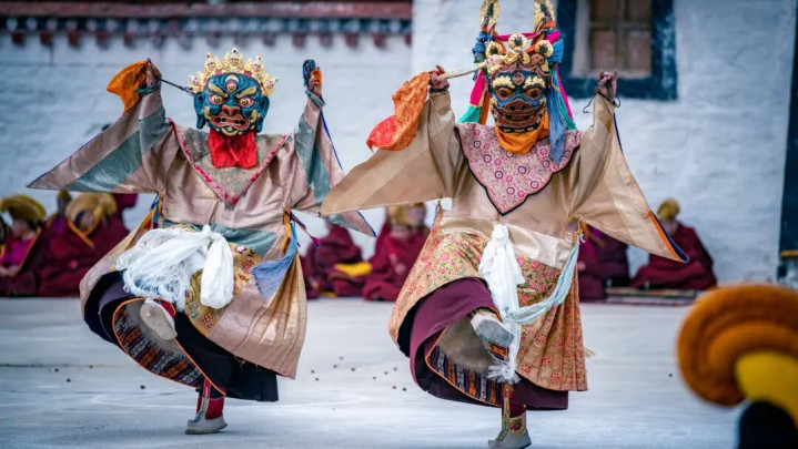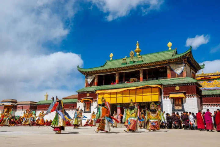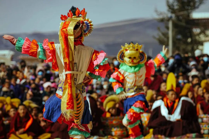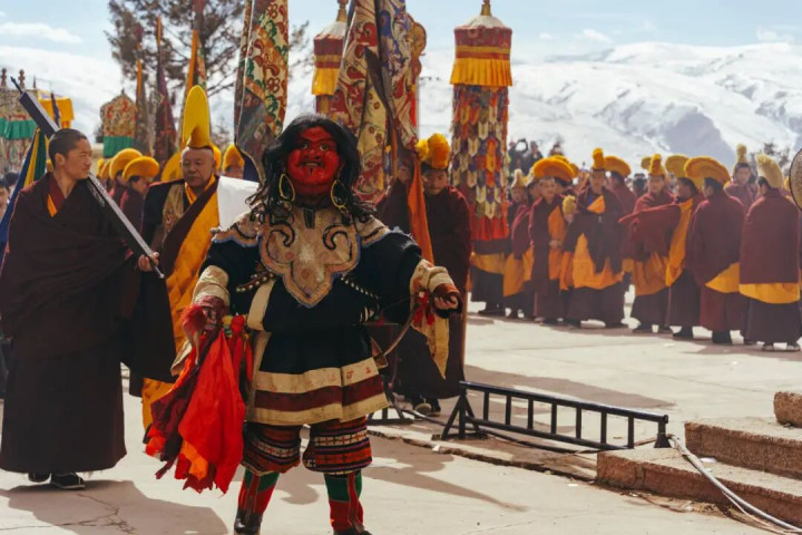 群众还能有幸不雅赏到金刚法舞 藏语称之为“羌姆” 僧侣们依照流传已久的传统脚本 演绎出一幕幕充满浓厚宗教氛围的法舞藏戏 这不仅是一场尊容的宗教庆典 更是藏传释教面向普罗群众的一种独到传播状貌