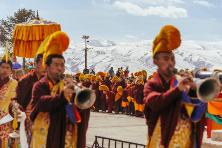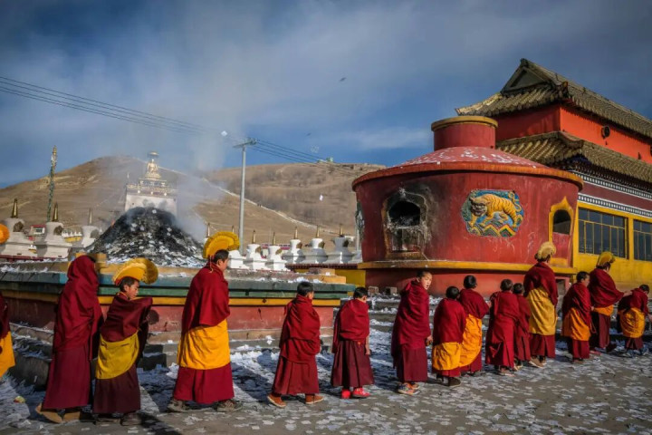 从正月起,毛兰姆大法会拉开序幕 亮宝节的张含韵流转、酥油灯的妍丽灵通 社火的欢娱吵杂相继而至 这是安多藏区千年传承的 你弗成错过的冬日竣事挂念