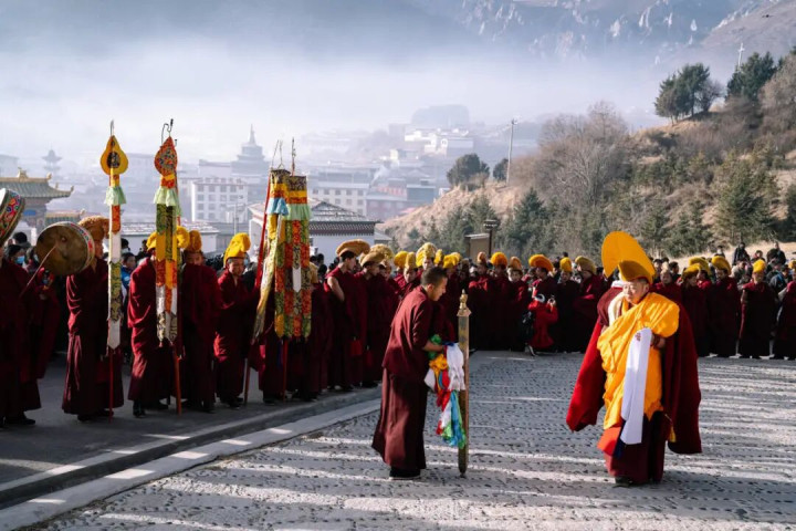 主要作为有寺僧检会、辩经 诵经、展佛、法舞、祷告等 届时通盘甘南藏区的格鲁派庙宇 皆在进行着开阔的法会庆祝作为