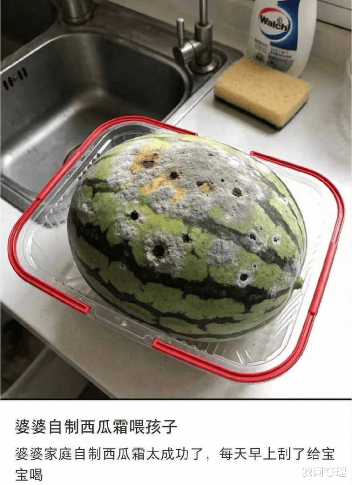 刷到这张“克己西瓜霜”的图时,我的血压径直拉满:半颗长满绿毛黑斑的西瓜摆在厨房台面上,配文却是“婆婆克己西瓜霜太奏效了,每天早上刮了给宝宝喝”。短短几行字,把现代年青东谈主在育儿里的窒息感焊在了屏幕上。这张图能今夜刷屏,根底不是因为可笑,而是因为每个被父老“土要津”讹诈过的爸妈,王人在这颗发霉的西瓜里看到了我方的影子。